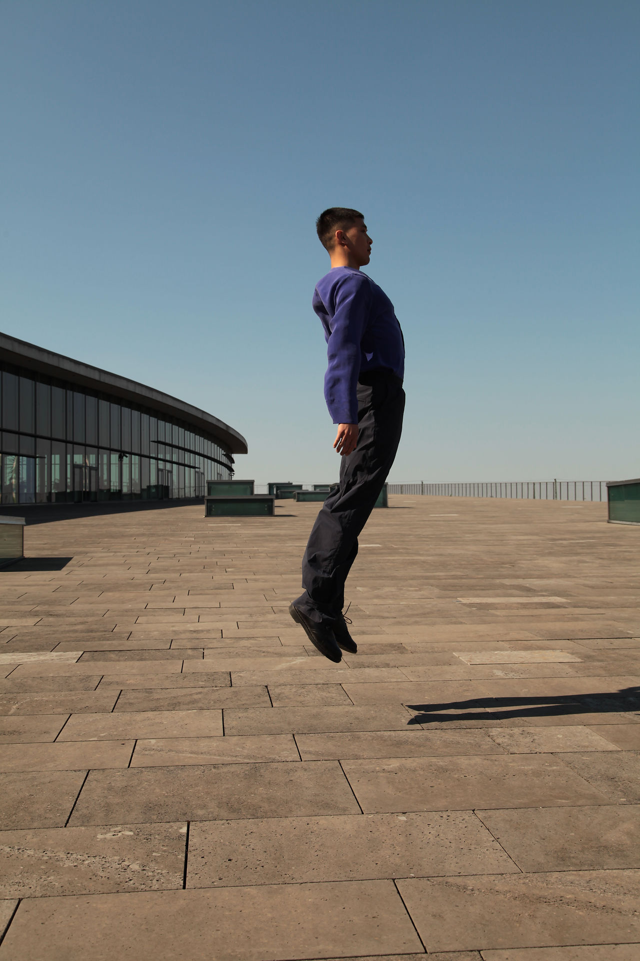The collection has three looks and a weekender bag so that you have a outfit for every situation, from a shiny slik suit to short trousers with a kimono inspired piece over a long coat with big pockets for traveling.